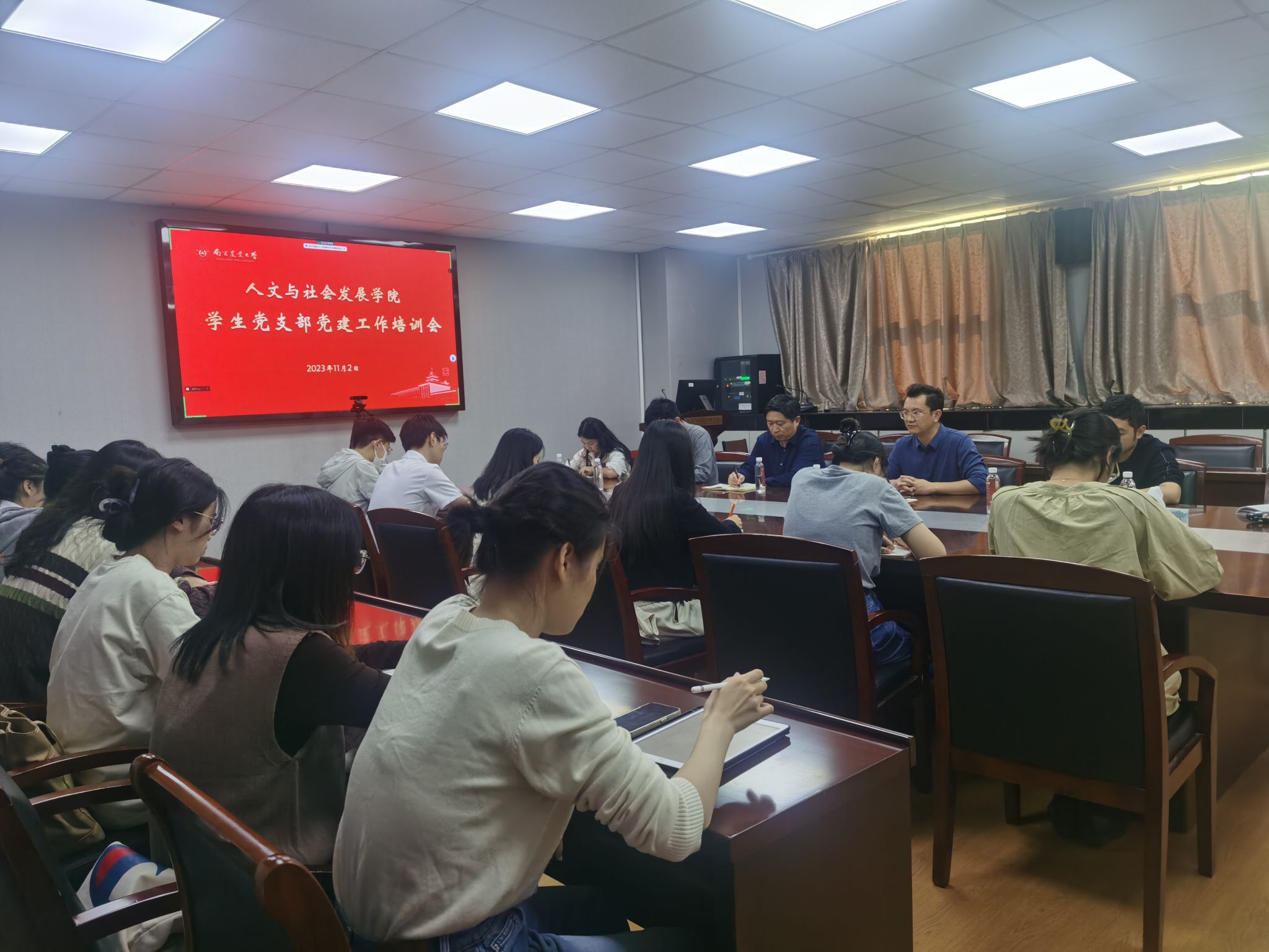 在逸夫楼6041会议室召开了新学期学生党支部党建工作培训会。院党委书记李日葵,校党委组织部专职组织员何旭出席会议,博彩网站导航